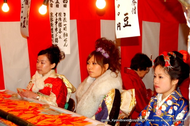 節分豆が吉田神社境内で販売されるようになったのは大正14年からのことで、炒り豆の入った俵型の商品は飛ぶように売れ、それ以来、神社で節分豆が授与され販売されることが定着していったと聞く。それを提唱した頃は業界の誰もが見向きもしなかったらしいが、「豆政」さんの主の孤軍奮闘の為せる技だったのである。